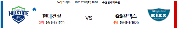 2025년 12월 2일 19:00 V-리그 여자부,