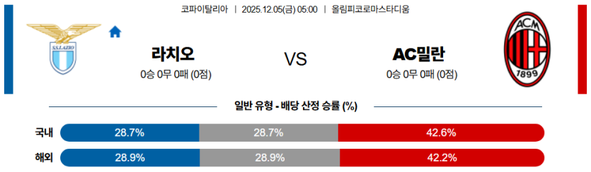 | 언더/오버 | 오버 (2.5) | • 라치오의 수비 불안과 득점 가능성 반영 |