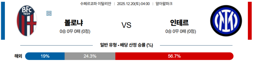 전술 강점: 쓰리백으로 중앙을 단단히 잠근 후, **바렐라**의 발끝에서 시작되는 **단 한 번의 패스**로 상대 뒷공간을 허문다. **라우타로**의 마무리 능력은 볼로냐 수비진에게 공포의 대상이다.