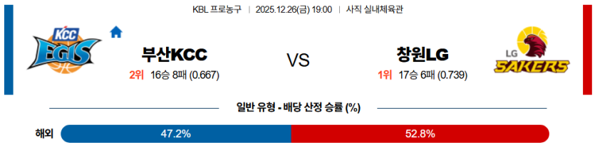 25년 12월 26일 19:00 KBL 분석 부산 KCC vs 창원 LG [스포팡]