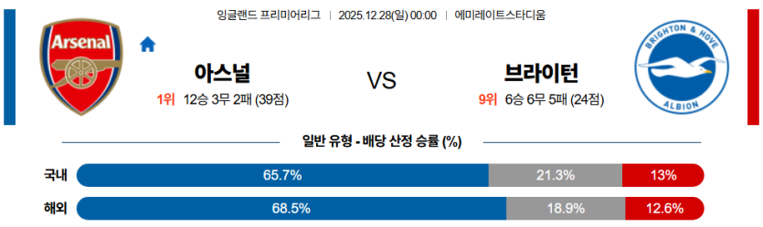 | 언더/오버 | 오버 (2.5) | • 아스널의 공격력과 수비 불안 공존 |