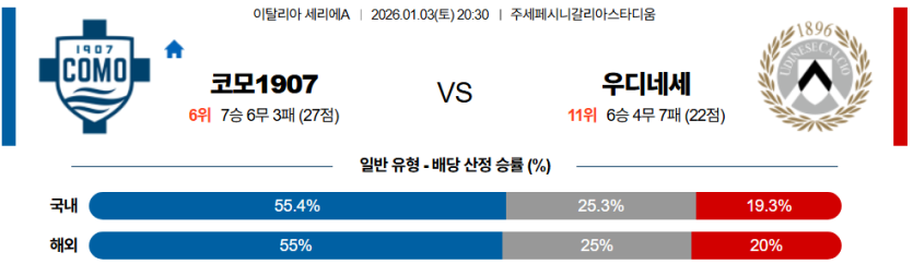 26년 1월 3일 20:30 세리에 A 분석 코모 vs 우디네세 [스포팡]