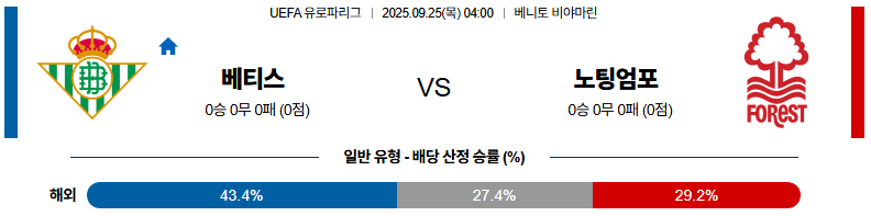 25년 9월 25일 04:00 유로파리그 분석 레알 베티스 vs 노팅엄 포레스트 [스포팡]