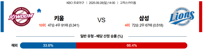 25년 9월 28일 14:00 KBO 분석 키움 vs 삼성 [스포팡]