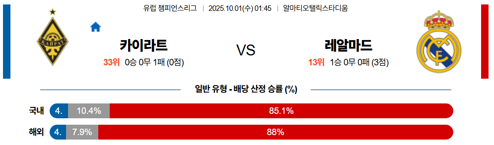 25년 10월 1일 UEFA 챔스 분석 카이라트 vs 레알 마드리드 [스포팡]