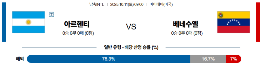 25년 10월 11일 09:00 남축INTL 분석 아르헨티나 vs 베네수엘라 [스포팡]