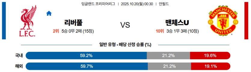 25년 10월 20일 프리미어리그 분석 리버풀 FC vs 맨체스터 유나이티드 [스포팡]