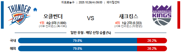 25년 10월 29일 NBA 분석 오클라호마시티썬더 vs 새크라멘토킹스 [스포팡]