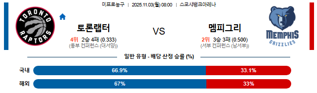 25년 11월 03일 NBA 분석 토론토랩터스 vs 멤피스그리즐리즈 [스포팡]