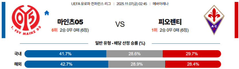 25년 11월 07일 UEFA 유로파컨퍼런스리 분석 마인츠 vs ACF 피오렌티나 [스포팡]