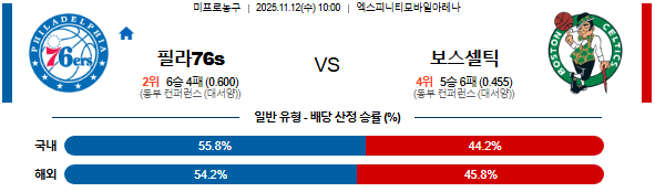 25년 11월 12일 NBA 분석 필라델피아76ERS vs 보스턴셀틱스 [스포팡]