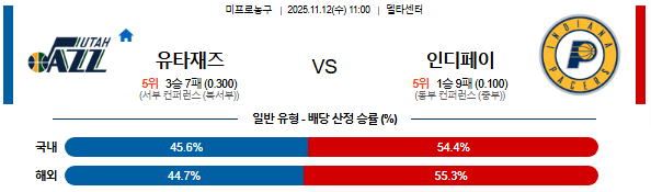 25년 11월 12일 NBA 분석 유타재즈 vs 인디애나페이서스 [스포팡]