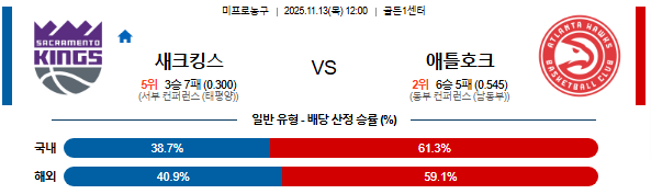 25년 11월 13일 NBA 분석 새크라멘토킹스 vs 애틀랜타호크스 [스포팡]