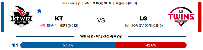 25년 9월 16일 18:30 KBO 분석 KT 위즈 vs LG 트윈스 [스포팡]