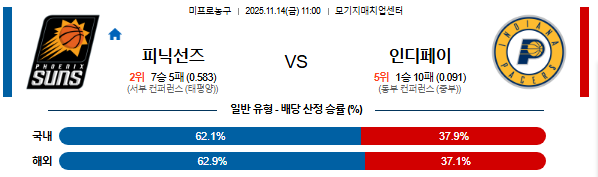 25년 11월 14일 NBA 분석 피닉스선즈 vs 인디애나페이서스 [스포팡]