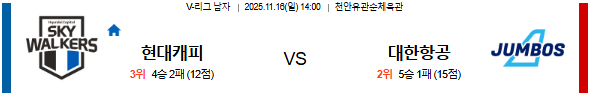 25년 11월 16일 V-리그 남자부 분석 현대캐피탈 vs 대한항공 [스포팡]