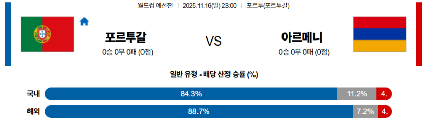 25년 11월 16일 월드컵 예선전 분석 포르투갈 vs 아르메니아 [스포팡]