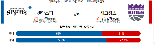25년 11월 17일 NBA 분석 샌안토니오스퍼스 vs 새크라멘토킹스 [스포팡]