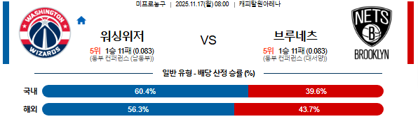 25년 11월 17일 NBA 분석 워싱턴위저즈 vs 브루클린네츠 [스포팡]
