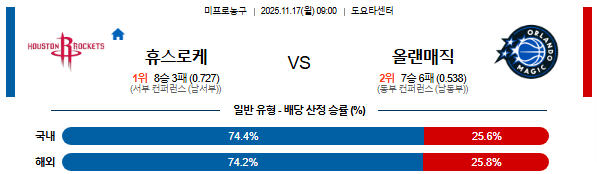 25년 11월 17일 NBA 분석 휴스턴로켓츠 vs 올랜도매직 [스포팡]