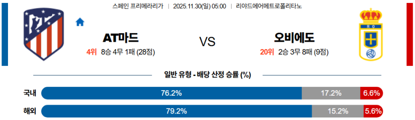 25년 11월 30일 05:00 라리가 분석 AT 마드리드 vs 오비에도 [스포팡]