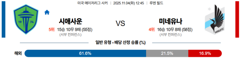 📝 스포팡 경기 프리뷰2025년 11월 04일 메이저리그사커,시애틀 사운더스 FC와 미네소타 유나이티드 FC의 맞대결이 펼쳐진다.시애틀은 **안정적인 빌드업 구조**를 가졌으나 결정적인 침투 루트가 단조로워 **공격 효율이 떨어진다**.미네소타는 단단한 수비 블록을 유지하지만 날카로운 역습 타이밍을 잡지 못해 **공격 전개가 반복적**이다.이 경기는 **'창의성 부족과 안정적 수비'**의 구도 속에 양 팀 모두 **찬스 완성도가 떨어져** 무승부로 귀결될 가능성이 매우 높다.🔎 스포팡 전술 분석 및 주요 포인트✅ 시애틀 사운더스 FC (Seattle Sounders FC)포메이션: 4-2-3-1 형태, 안정적 빌드업.공격 핵심: 코사 리엔치 (중원 전환 중심), 롤단 (2선 커버 범위), 무소브스키 ..